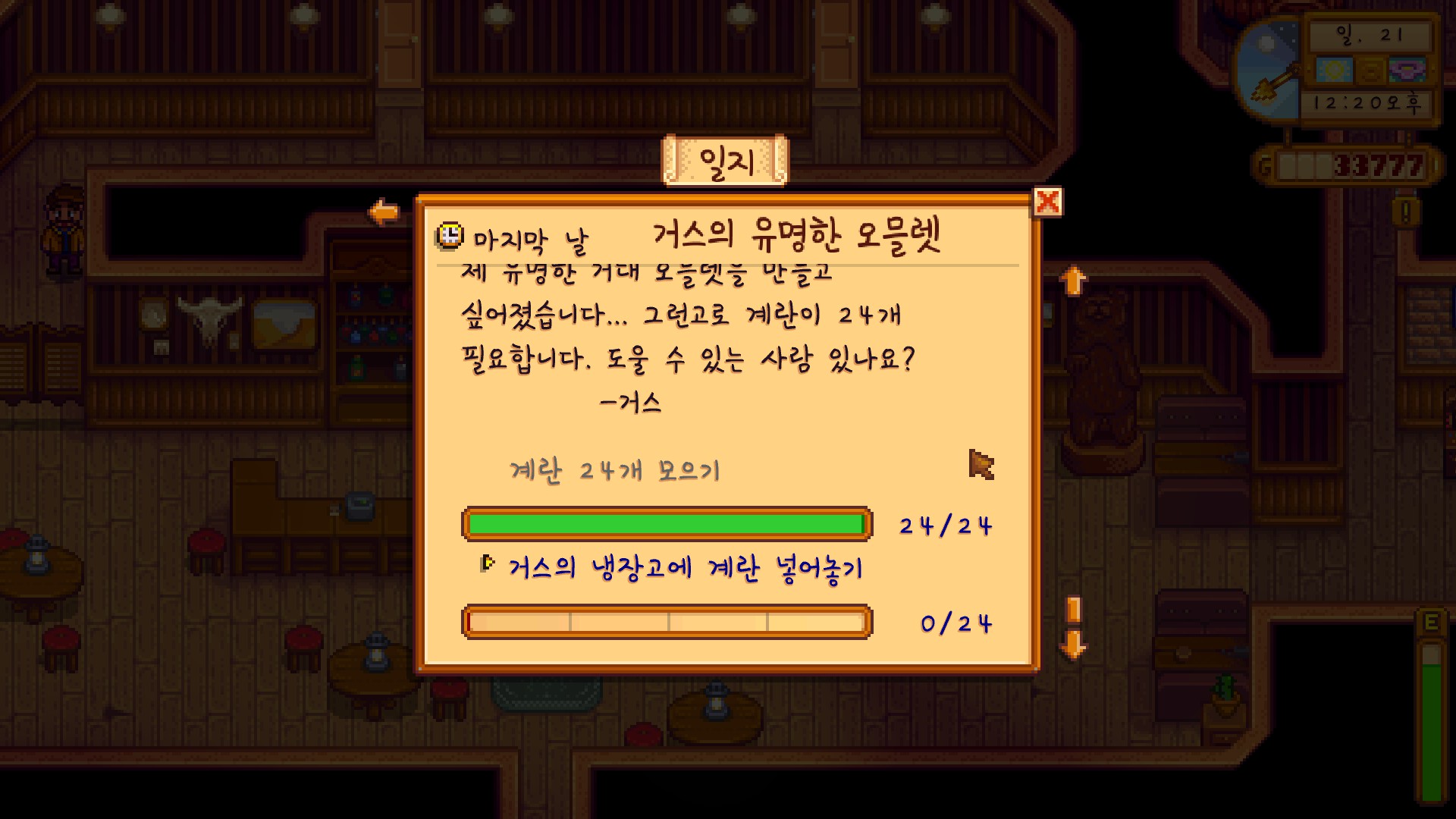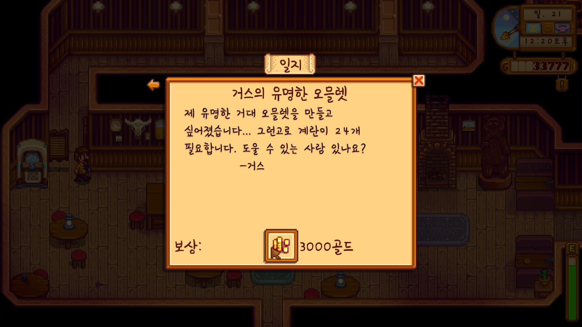 거스의 특별미션 유명한 오믈렛을 완료했습니다!